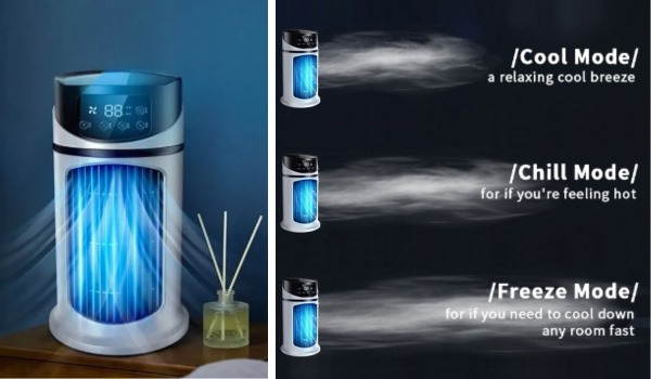 Everything a traditional AC can - cool any space, regulate humidity, filter dust particles from the air... It can cool in as little as 25 seconds and regulate temperatures between 60°F and 82°F... It cools the incoming air and then pumps out cold, freezing air on the other side.